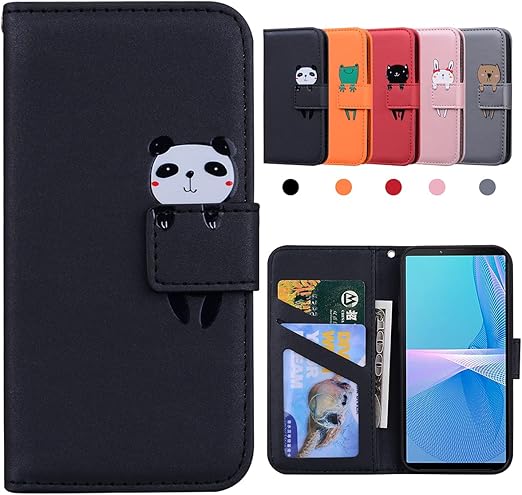 Xperia 10 III ケース エクスペリア10 III ケース SO-52B ケース かわいい動物 薄型軽量 SO-52B, SOG04 xperia10III ケース カード収納 スタンド機能 傷つけ防止 スマホケース xperia SOG04 カバー ソニー エクスペリア10 iii ケース 手帳型 おしゃれ 便利 財布タイプ カバー [6.0インチ★Sony Xperia 10 III ] (黒) a