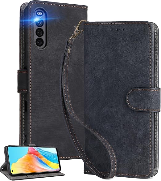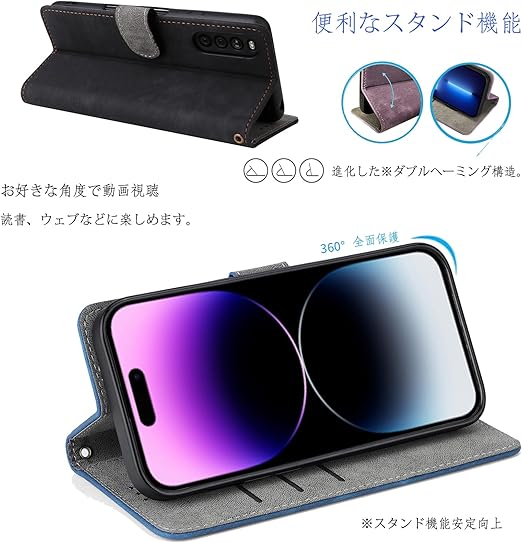 UnivoColors Sony Xperia 10 III(SO-52B/SOG04) 手帳型 スマホケース 携帯カバー 高級合皮 RFIDブロッキング カード収納 専属ストラップ同梱 マグネット開閉 横置きスタンド機能 放熱性 着脱しやすい 全面保護 カメラ保護 衝撃吸収 落ち着いた色(ブラック) a