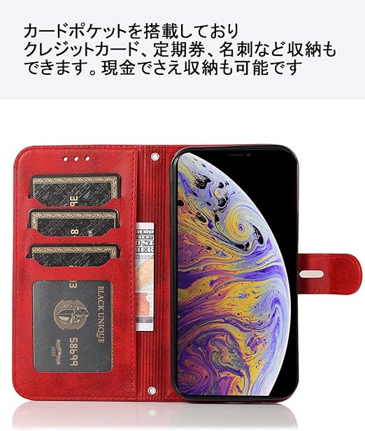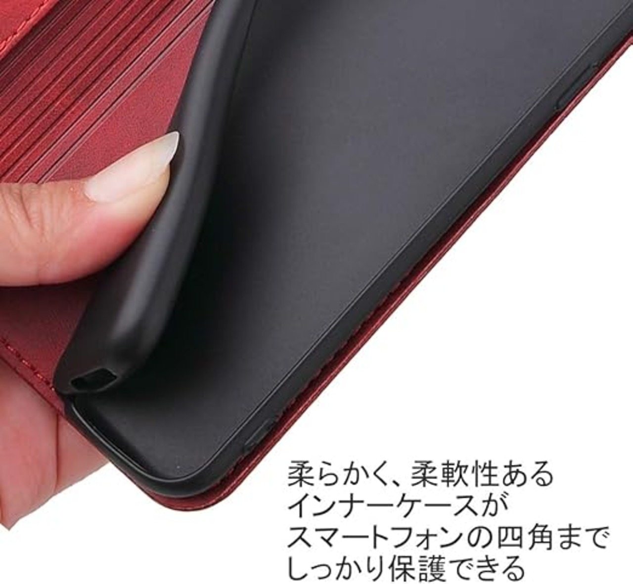 ❶耐衝撃性: 耐熱性と柔軟性を誇る上質なPUレザーで作られ、手触り良い、落下時の衝撃を効率的よく吸収できるようにケースの各コナーの裏側が設計されています。丈夫でほど良い厚みで、落としてもスマホをきちんとお守れます。