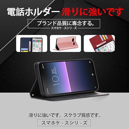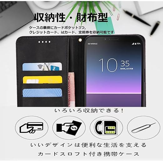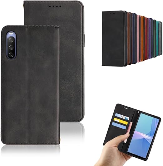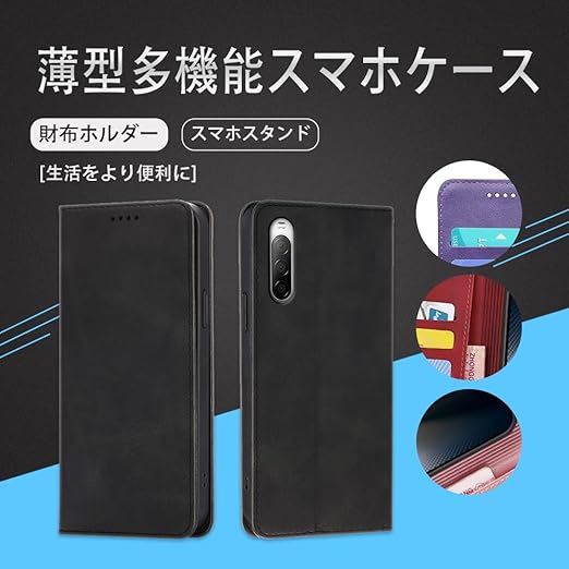 対応Xperia 10 III SO-52B SOG04 / Xperia 10 III Lite 手帳型 シェルノートブックタイプ保護カバーノートブックカード収納側マグネットブラケット機能互換性のある耐衝撃性軽量モダンシンプルファッションPUレザー折りたたみ式フル保護カバー男性と女性のスマートフォンケース用(黒) a