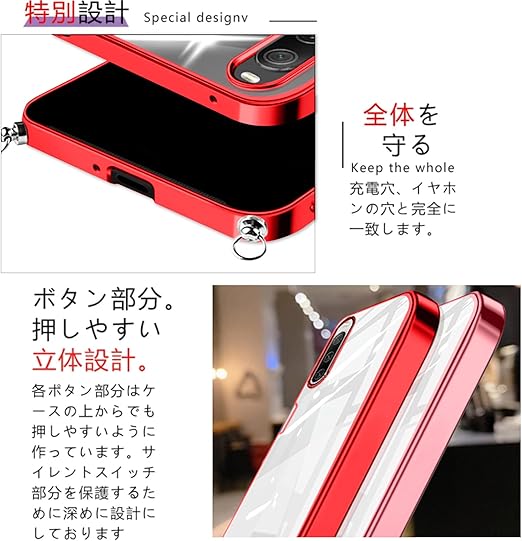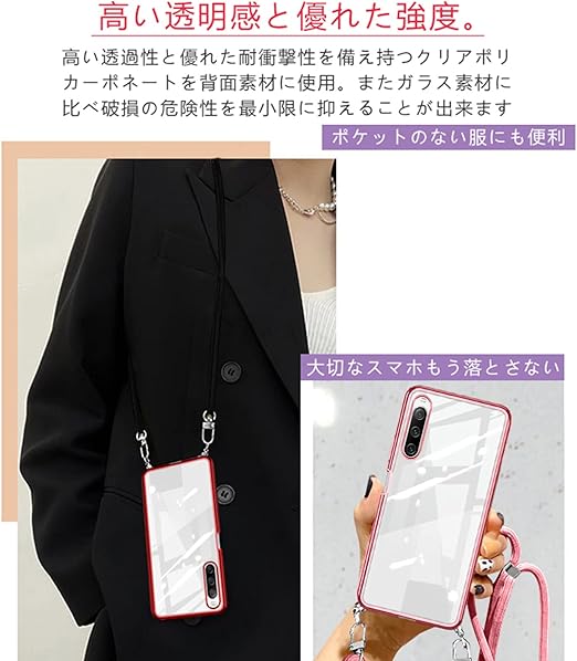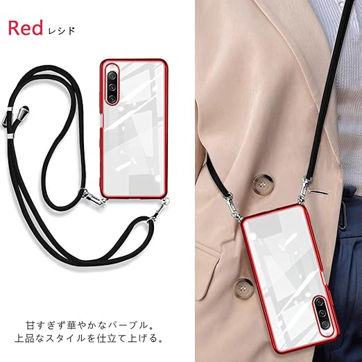 Xperia 10 III 用の ケース ショルダー クリア TPU Xperia10 III Lite カバー SO-52B SOG04 スマホケース 肩掛け 首掛け 斜めかけケース 透明 薄型 耐衝撃 エクスペリア10iii(レッド) a