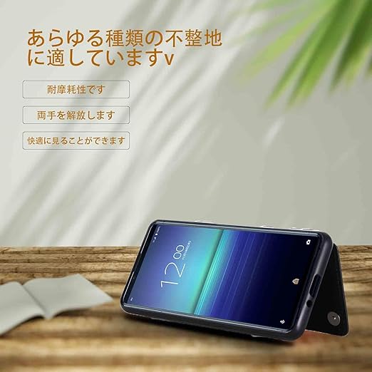 【横置きスタンド機能付き】カードケースの部分を開いてスタンドになれて、ちょっとした時にスタンドがわりとして大変便利です。スマホスタンド不要で好きな角度に調整でき、映画を観たり、レシピを見ながら料理をしたり、いつでも腕が疲れる心配はなく、手に持つ必要がなく、新幹線や飛行機内での長距離移動の場合、テーブルにおいて視聴もできる。