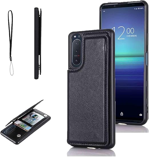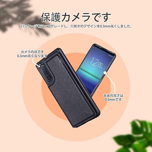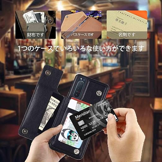 【OULO1】SONY Xperia 10 iii Lite XQ-BT44/SO-52B/SOG04/A102SO 用 ケース レザー カード収納 スマホケース 耐衝撃 軽量 薄い 背面 IC カード入れ 手帳型 財布型 カバー(ブラック)エクスペリア10 第3世代 xperia10 3 Black a