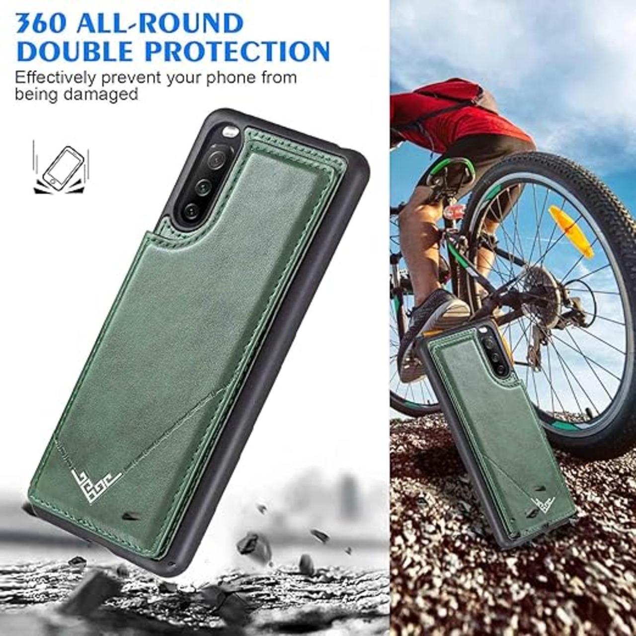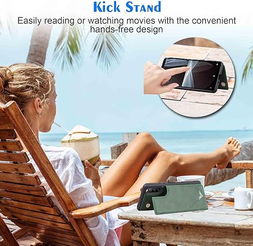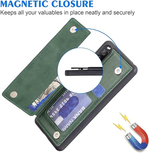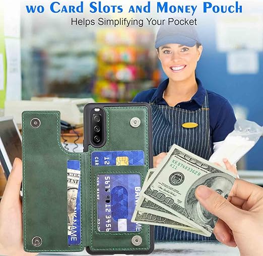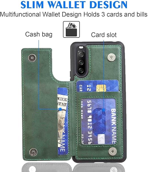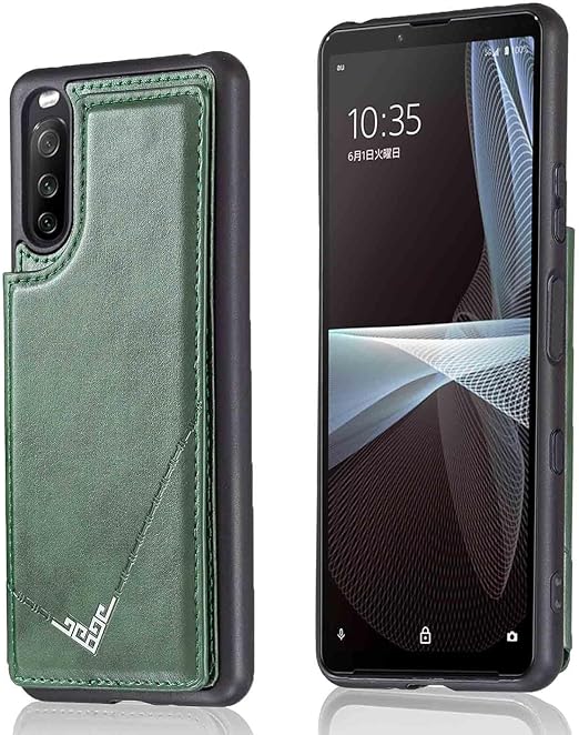 【Geshh】Xperia 10 iii Lite XQ-BT44/SO-52B/SOG04/A102SO レザーケース(ダルグリーン)耐衝撃耐衝撃 財布型カバー カード収納 横置きスタンド機能 開閉式 ストラップ付き 薄型レザーケース 対応 ソニー エクスペリア10 iii xperia10iii GREEN a
