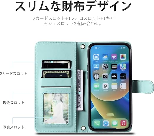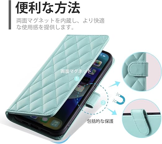 【カード収納機能&ストラップ付き】カードレシートや名刺など、丈夫で安全な折り畳み式本体を収納できます。マグネットはケースの側面に内蔵されており、カードに直接触れないため、磁気カードの損傷を心配する必要はありません。肩掛けのストラップの長さが調整しやすいのです、特にポケットがない服が多いのでストラップ付きなのがとても