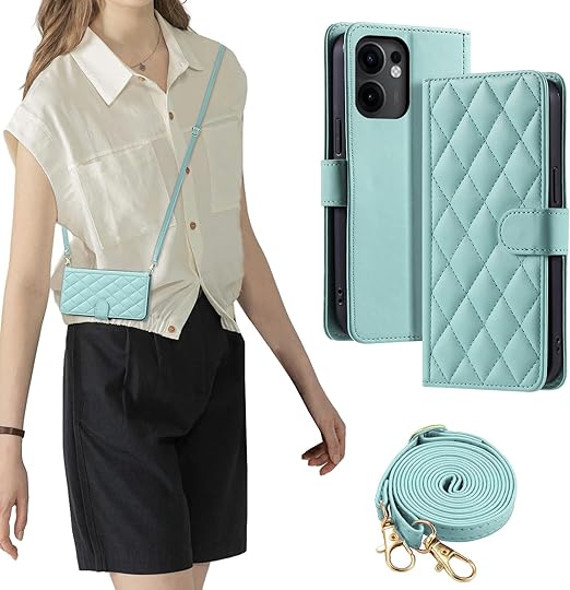 laddutoi FOR motorola edge 60 pro ケース 手帳型 おしゃれ ストラップ付き スタンド機能 カード収納 軽量 薄型 耐衝撃 高級PUレザー 滑り防止 財布型 内蔵マグネット 開閉式 チェック柄 上質 耐摩擦 マグネット式 肩掛け 斜め掛けーミントグリーン a