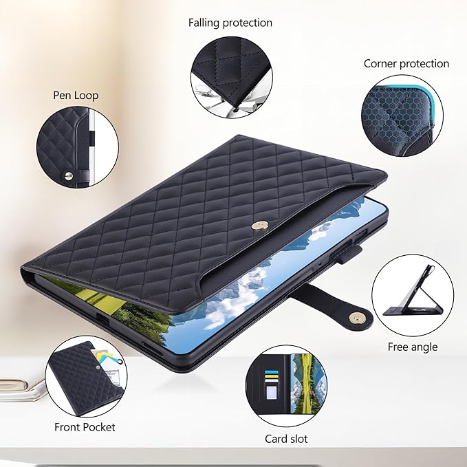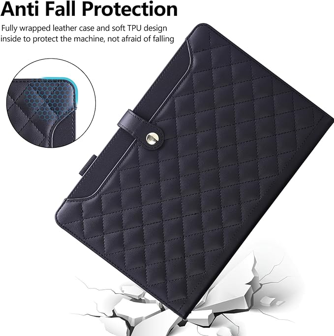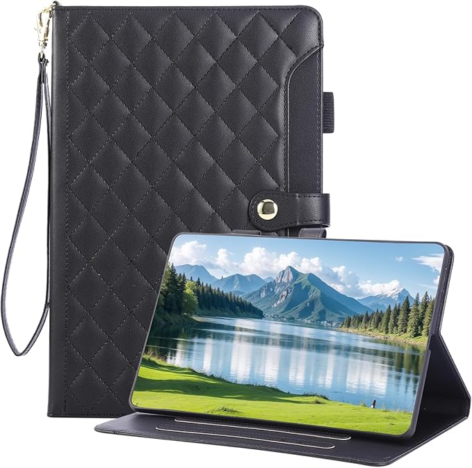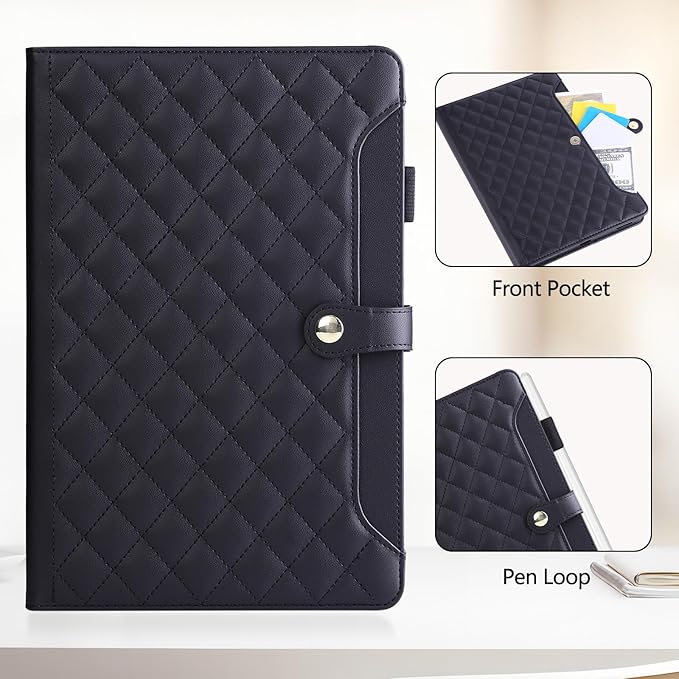 iPad air 11インチ ケース M3 2025/M2 2024 カバ おしゃれ キルト 刺繍 タブレットケース ipad Air 第5/4世代 ケース 手帳型 軽量 カード収納 ペン収納 スタンド機能 iPad pro 11 カバー 耐衝撃 傷つけ防止 ipadair M3 11インチ 保護カバー-ブラック a