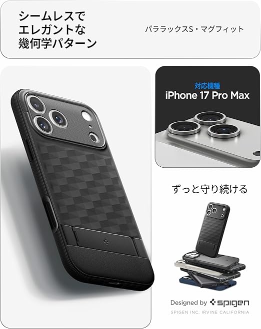 Spigen 【創業18年の技術力】 iPhone 17 Pro Max ケース MagSafe対応 マグネット搭載 スタンド付き 米軍MIL規格 パララックスS・マグフィット (マット・ブラック) ACS09911 a