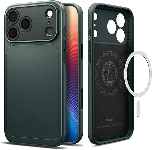 Spigen 【創業18年の技術力】 iPhone 17 Pro Max ケース MagSafe対応 マグネット搭載 米軍MIL規格 マット 薄型 シン・フィット・マグフィット (アビス・グリーン) ACS09880 a