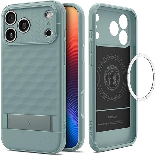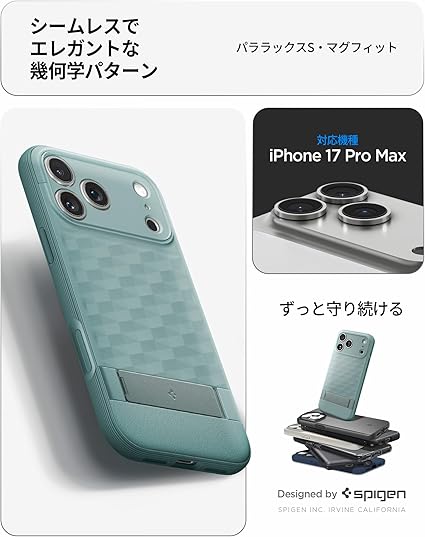 Spigen 【創業18年の技術力】 iPhone 17 Pro Max ケース MagSafe対応 マグネット搭載 スタンド付き 米軍MIL規格 パララックスS・マグフィット (セージ・グリーン) ACS09912 a
