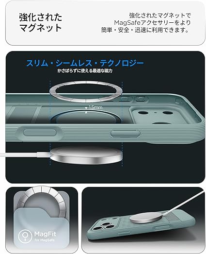 【MagSafe完璧対応】強化されたマグネットが内蔵されており、強い固定力でMagSafe機能を便利に利用できます。