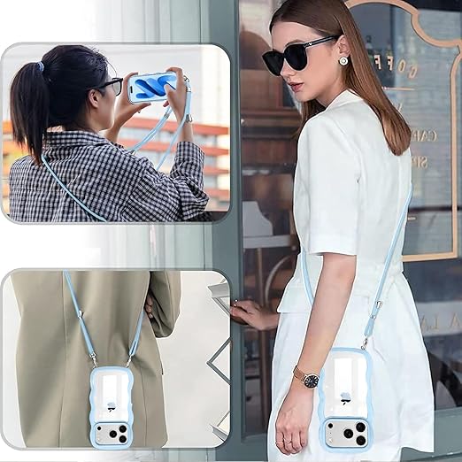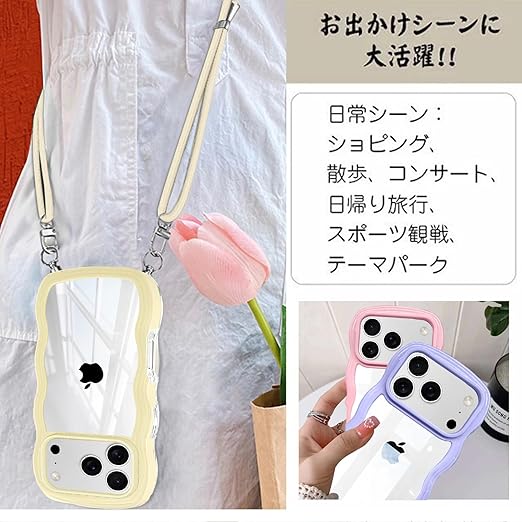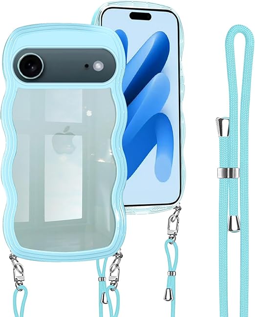 iPhone Air 用 ケース クリア ショルダー iPhoneAir 用 カバー 首掛け 肩がけ 斜めかけ 紐付き ストラップ付き アイフォンAir 用 ケース 韓国 可愛い かわいい 透明 薄型 シリコン TPU バンパー スマホケース ライトブルー a