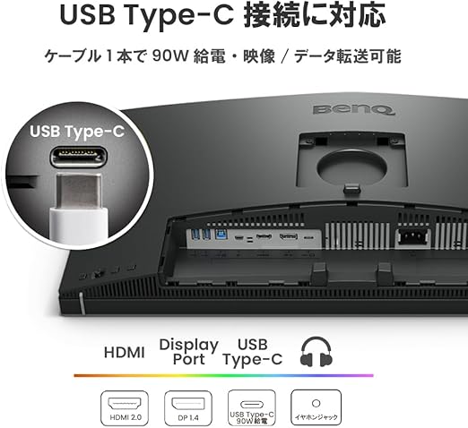 27インチの高画質4K(3840×2160)解像度&ノングレアIPSパネルを採用したデザイナー向けモニター。3辺フレームレスのスタイリッシュな外観も特長。 USB-C端子搭載で、映像出力・データ転送・90W給電の同時対応。ケーブル1本でノートPCとのスマートな接続を実現。