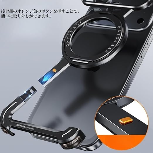 耐衝撃設計 アルミ合金素材使用:4つのコーナーにはエアバッグを搭載。落下時の衝撃を吸収してPhoneを保護します。 素材には、耐久性に優れたアルミニウム合金を採用しています。