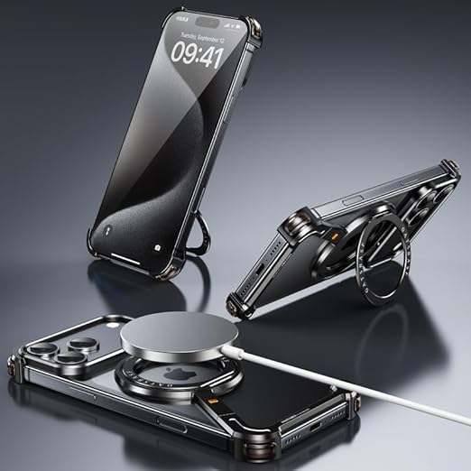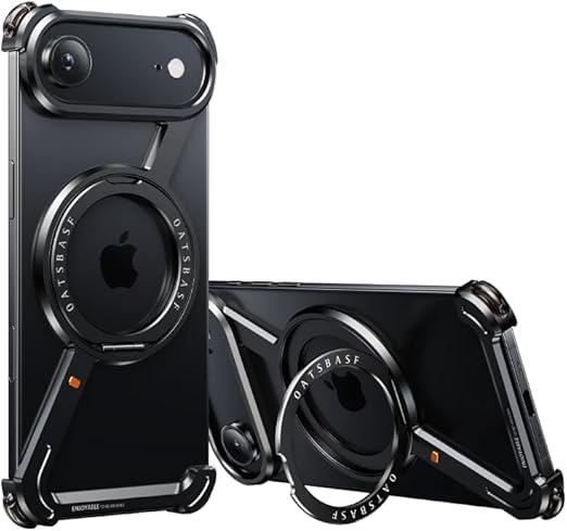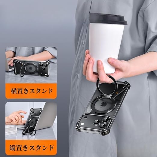 iPhone 17 Air 用バンパーケース 360°回転リング magsafe対応 縦置き 横置き スタンド iPhone 17 Air 用ケース メタルフレーム アルミバンパー かっこいい 四隅エアバッグ,ブラック a