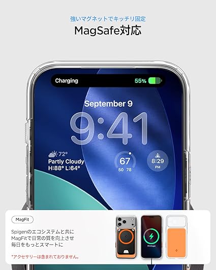 【MagSafe完璧対応】強化されたマグネットが内蔵されており、強い固定力でMagSafe機能を便利に利用できます。