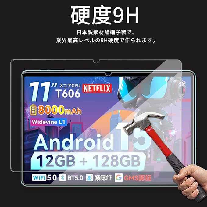 ◆硬度9H:表面硬度9Hの強化ガラス仕様、スクラッチによる引っかき傷を防止し、タブレッド液晶画面を徹底的に保護します。