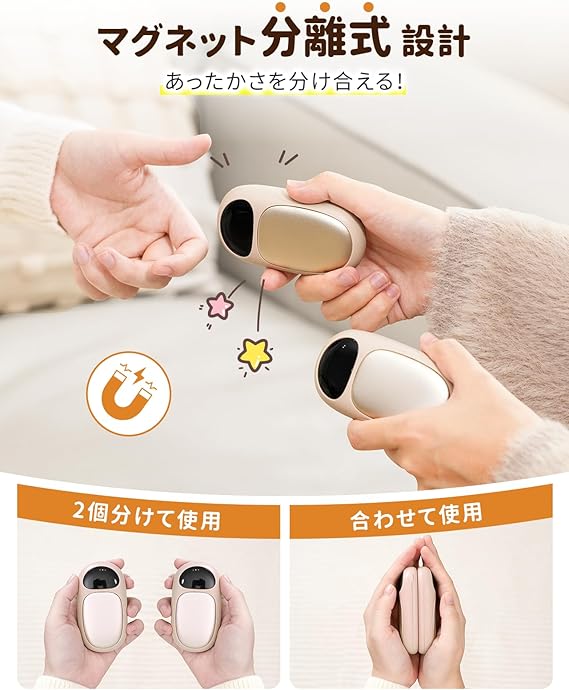 【2025新登場】 HAGOOGI 充電式カイロ 2秒急速発熱 3階段温度調節 【小型 超軽量 磁気式/分離式設計】 電気カイロ 2個セット 6000mAh クリスマスプレゼント 最大14時間連続使用 持ち運びやすい 5V/2A急速充電 繰り返し利用 旅行 出張 通勤通学用 寒さ対策 ゴールド a