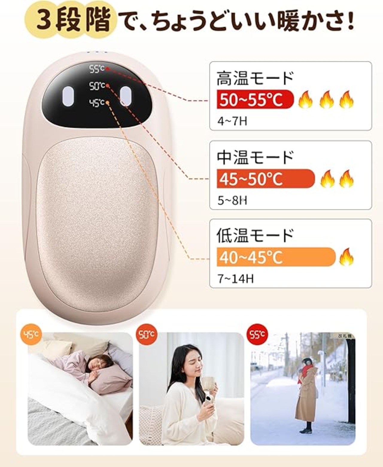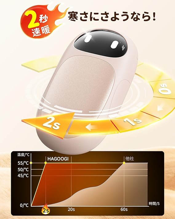 【2025年日本初上陸!圧倒的コスパ!新世代充電式カイロ】もう使い捨てカイロに頼る必要はありません。1日限りで捨ててしまうと、3ヶ月で約3,600円のコストに…。HAGOOGIの充電式カイロなら、1回の充電は約1.26円、3ヶ月使っても300円未満。さらに、温度調節機能付きでシーンに合わせて快適に。充電すればくり返し使えるから、ゴミも出さずスマートに冬を楽しめます。お財布にも地球にもやさしい、この冬はもう手放せない!