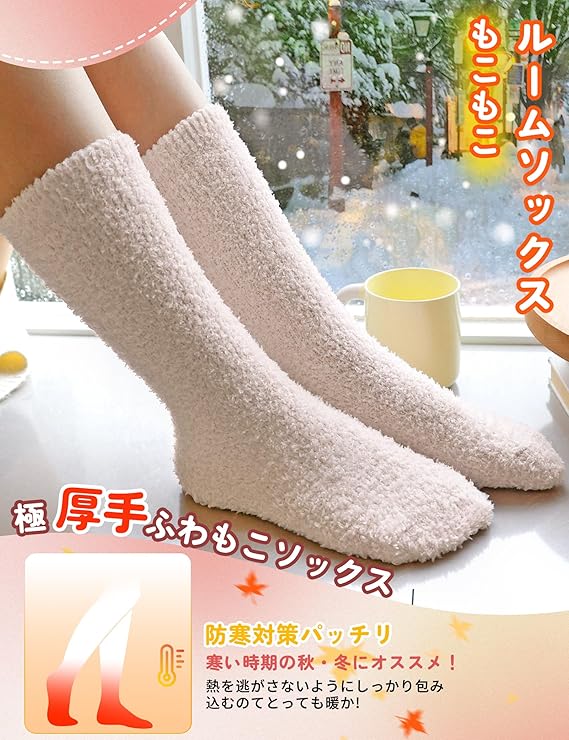 [CLOSEMATE] 靴下 レディース モコモコ靴下 あったか ルームソックス 防寒保温 3足セット 23-28cm ギフトボックス 通気吸湿発熱 厚手 自宅 睡眠 冬 無地 a