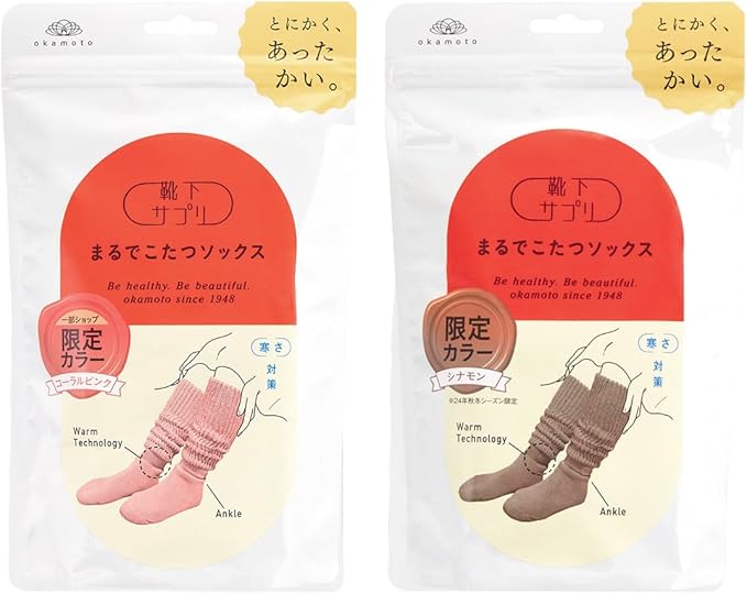 [オカモト] 靴下サプリ とにかくあったかい まるでこたつソックス 二足組 靴下 ハイソックス レディース 冷え対策 発熱(コーラル×シナモン、23-25cm)