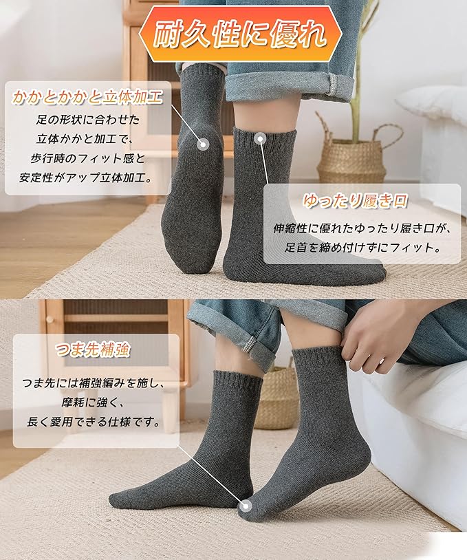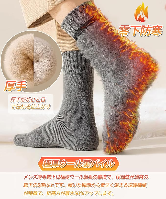[GAOTEK] 靴下 メンズ ソックス 冬 厚手 【極寒対応・極厚ウール裏パイル・360°蓄熱】 防寒靴下 ウールソックス 防寒 保温 消臭 耐久性 伸縮性 室内 アウトドア 登山 キャンプ 24-28㎝