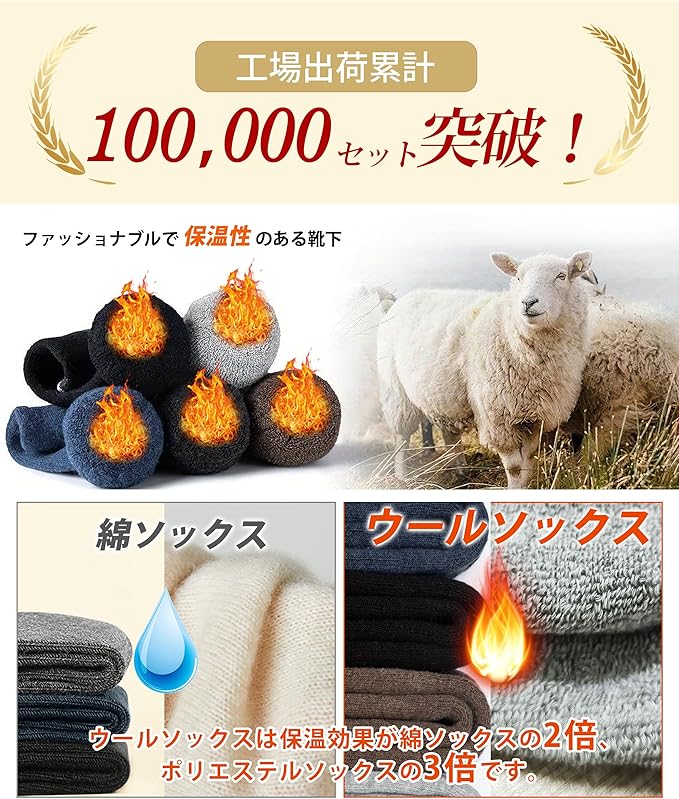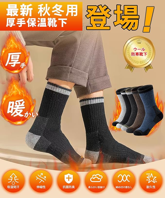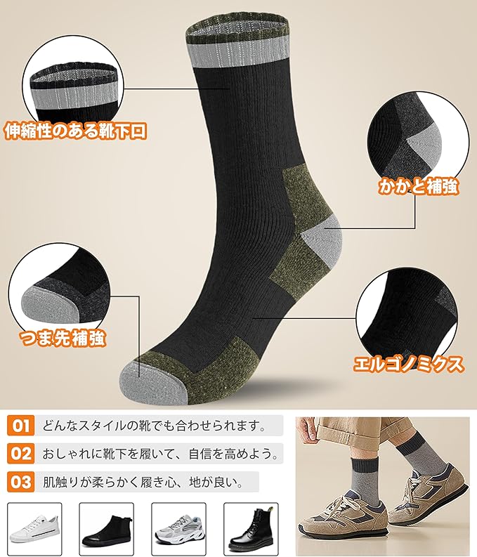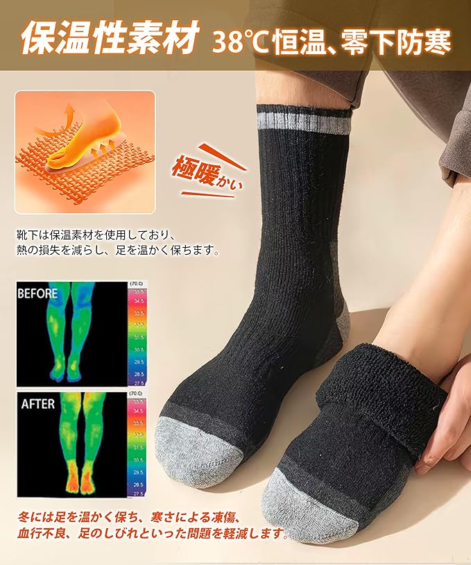 [HORADON] 靴下 メンズ 冬 厚手 防寒 あったか靴下 【極暖ウール裏パイル・温もりが足裏から全身に広がる・雲の上を歩くような柔らかさと快適さ】 暖かい ソックス 保温 防寒 吸汗 抗菌消臭 伸縮性 耐久性 温かい 男女兼用 5足セット 24-28㎝