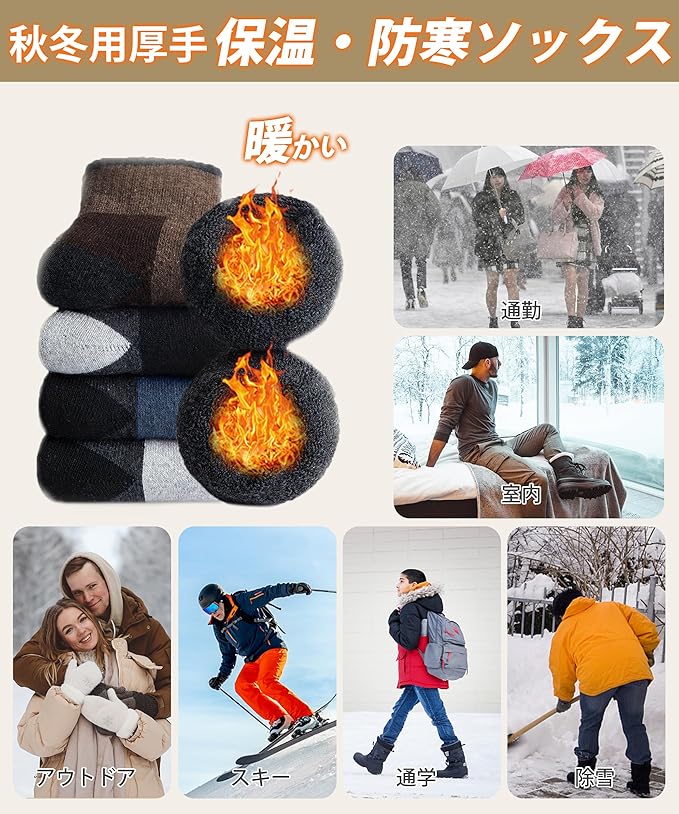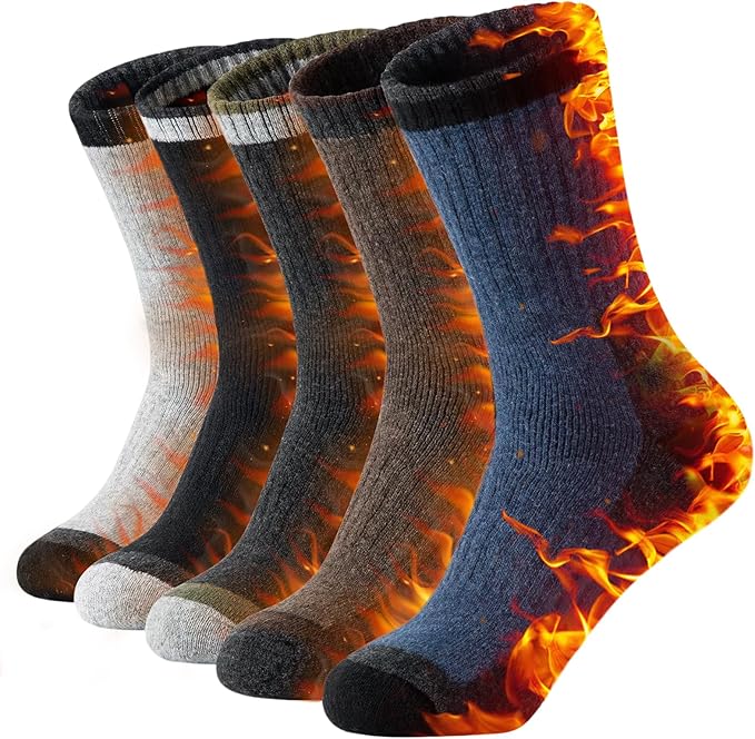 [HORADON] 靴下 メンズ 冬 厚手 防寒 あったか靴下 【極暖ウール裏パイル・温もりが足裏から全身に広がる・雲の上を歩くような柔らかさと快適さ】 暖かい ソックス 保温 防寒 吸汗 抗菌消臭 伸縮性 耐久性 温かい 男女兼用 5足セット 24-28㎝ a