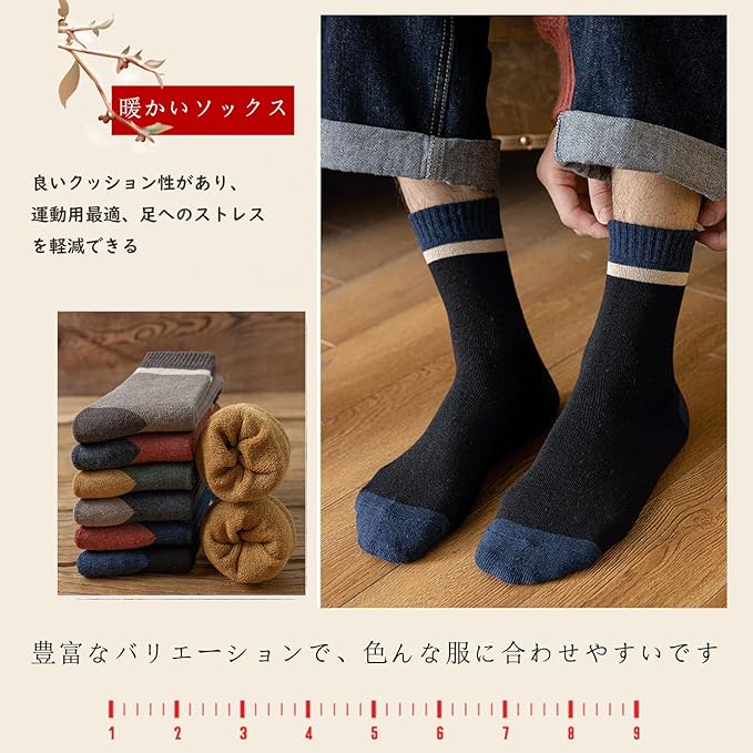 [DAMILY] 靴下 メンズ 冬 ソックス 厚手 暖かい あったか靴下 綿 冷え取り対策 くつした メンズ スポーツソックス 抗菌防臭 男性 室内 カラフル アウトドア おしゃれくつ下 保温防寒 ルームソックス 24-27cm