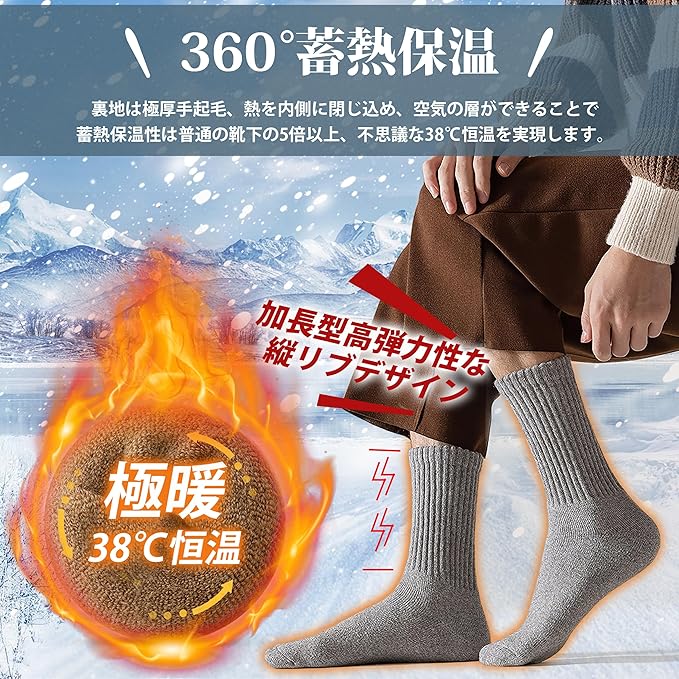[PALAME] 靴下 メンズ 冬 防寒 厚手【38℃極めた暖かさ・極厚雲感裏パイル・ウール素材】 3足/5足セット ウールソックス 保温 暖かい 柔らかい 吸汗 抗菌 防臭 伸縮性 耐久性 室内 アウトドア スポーツソックス 男性 25-29cm