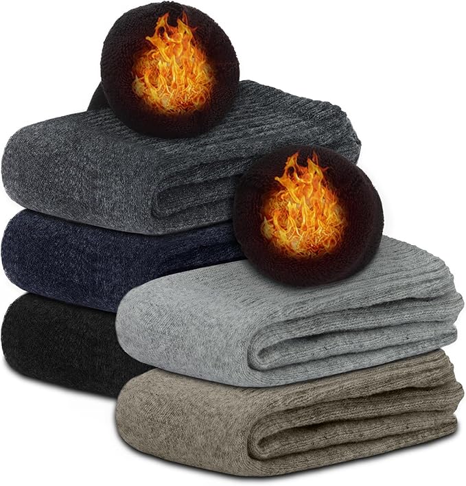 [PALAME] 靴下 メンズ 冬 防寒 厚手【38℃極めた暖かさ・極厚雲感裏パイル・ウール素材】 3足/5足セット ウールソックス 保温 暖かい 柔らかい 吸汗 抗菌 防臭 伸縮性 耐久性 室内 アウトドア スポーツソックス 男性 25-29cm b