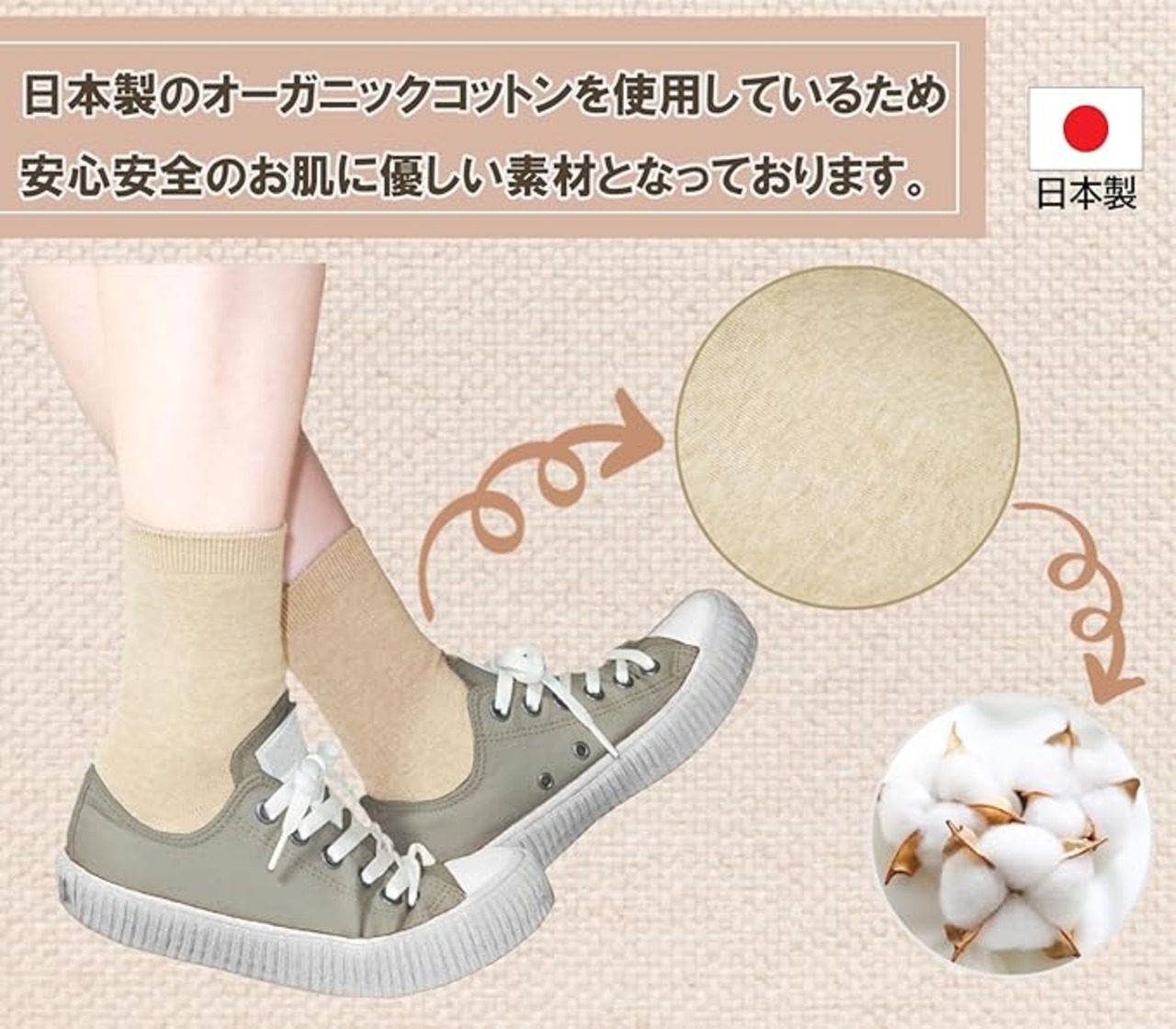 [Chica Hurra] レディースソックス 靴下 クルー丈 日本製 23-25cm 同色 2足セット オーガニックコットン a