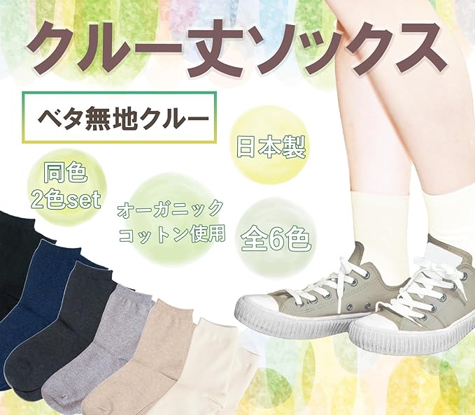 [Chica Hurra] レディースソックス 靴下 クルー丈 日本製 23-25cm 同色 2足セット オーガニックコットン