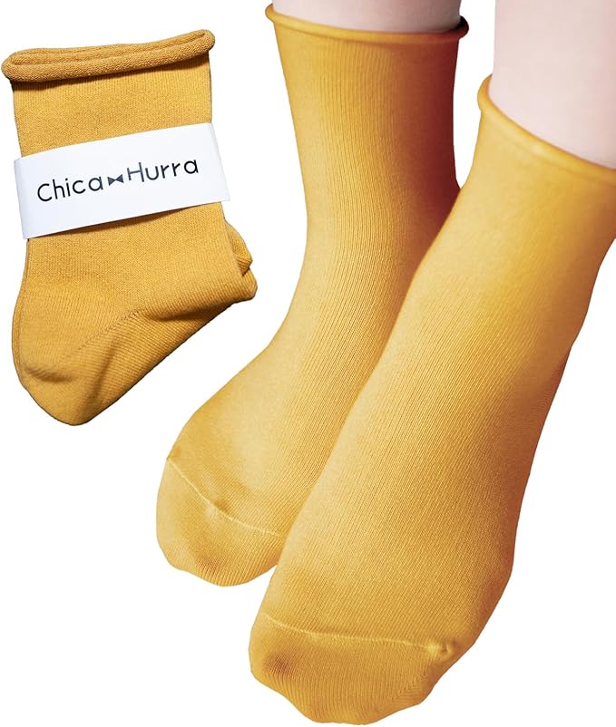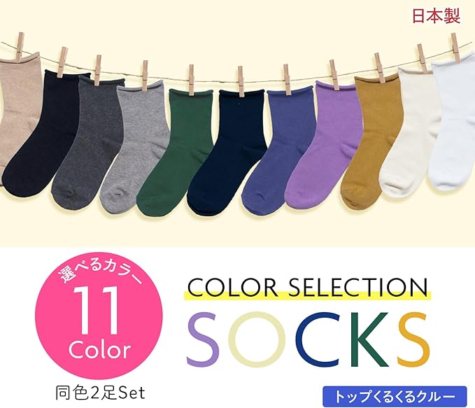 [Chica Hurra] レディースソックス 靴下 日本製 23-25cm 同色 2足セット ロークルー丈 ロールソックス