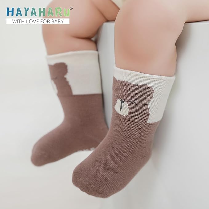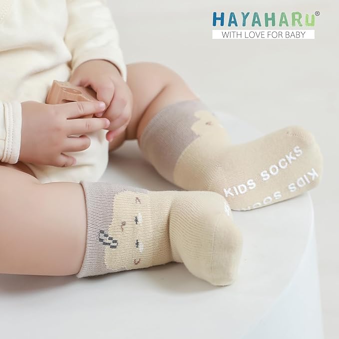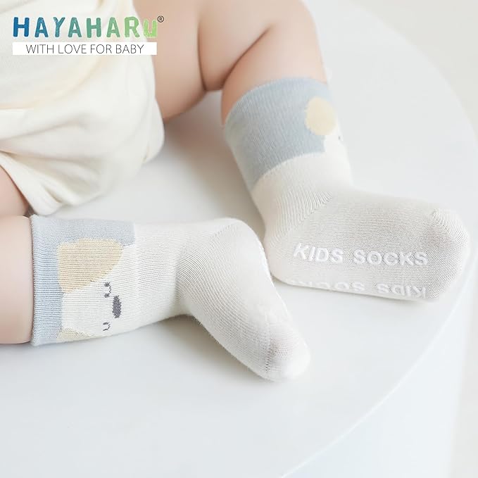 [HAYAHARU] ベビーソックス 滑り止め付き キッズ靴下 アニマル柄 子供ソックス かわいい 快適 柔らか 5足セット 0-5歳
