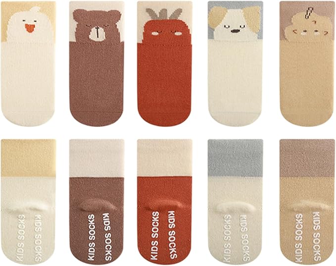 [HAYAHARU] ベビーソックス 滑り止め付き キッズ靴下 アニマル柄 子供ソックス かわいい 快適 柔らか 5足セット 0-5歳 a