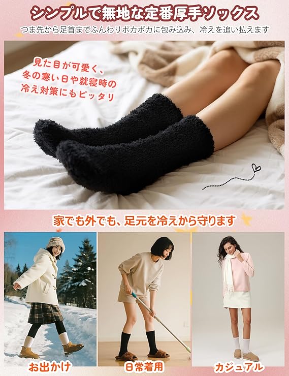 [CLOSEMATE] 靴下 レディース モコモコ靴下 あったか ルームソックス 防寒保温 3足セット 23-28cm ギフトボックス 通気吸湿発熱 厚手 自宅 睡眠 冬 無地