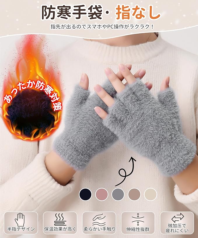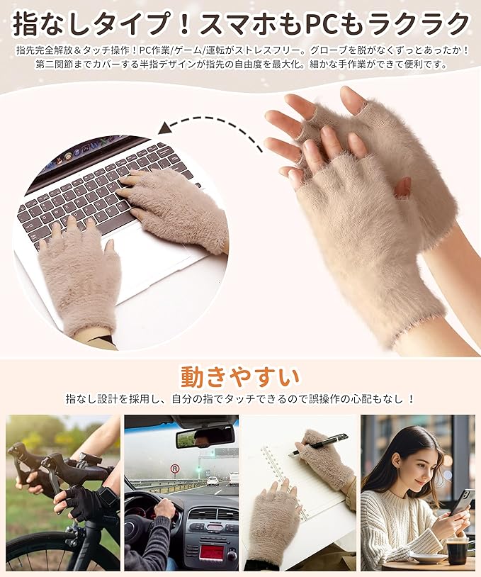 [SIVAN] 防寒手袋 手袋 レディース 指なし 【裏起毛で極暖・半指で自由!スマホもPCもラクラク・伸縮性 動きやすい・肌に優しい】 指なし手袋 防寒 半指 指切り スマホ パソコン ゲーム オフィス 自転車