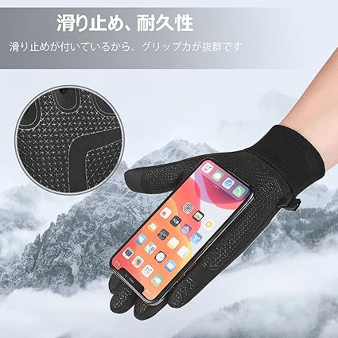 【タッチスクリーンランニンググローブ】手袋の親指と人差し指には、高品質の導電性素材を使用しています。スマートフォンやiPad、車のタッチパネルなど、タッチスクリーン機器を使用する際に手袋を外す必要がありません。注:タッチスクリーンをより効果的