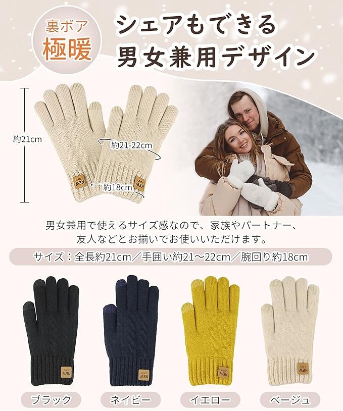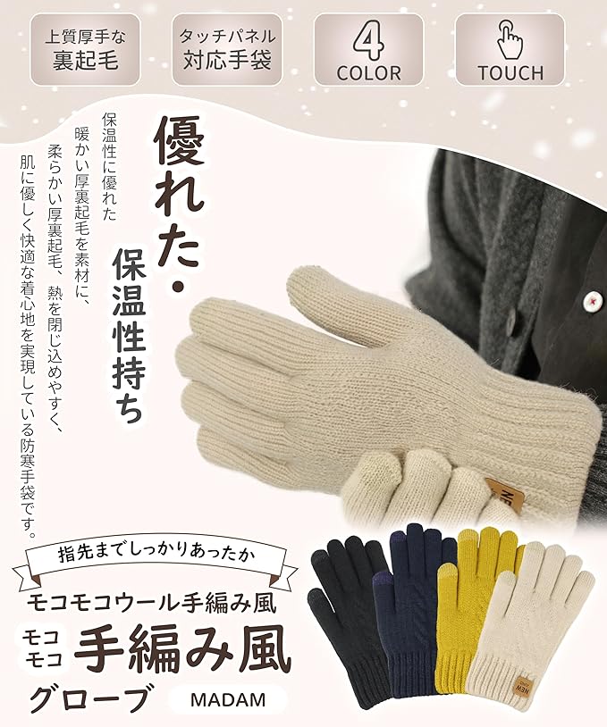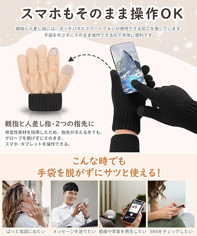 [SIVAN] 手袋 レディース 防寒 【360度防寒保温・厚裏起毛38℃恒温・革新的な柔らかさ・タッチパネル対応】 厚手 高い伸縮性 タッチパネル 耐摩耗性 ニット手袋 防寒手袋 防寒グローブ 自転車 通勤 通学 秋冬 フリーサイズ