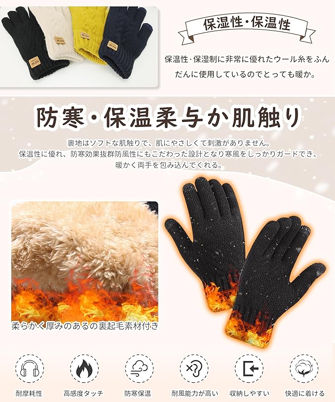 [SIVAN] 手袋 レディース 防寒 【360度防寒保温・厚裏起毛38℃恒温・革新的な柔らかさ・タッチパネル対応】 厚手 高い伸縮性 タッチパネル 耐摩耗性 ニット手袋 防寒手袋 防寒グローブ 自転車 通勤 通学 秋冬 フリーサイズ a