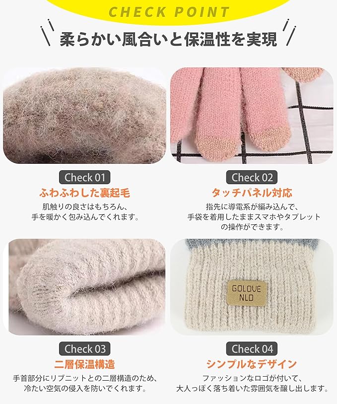 [YUMISS] 手袋 レディース 冬 防寒 【ふわふわ裏起毛・二層ニット保温・超高い防風性】【スマホ対応便利・可愛くて着心地良い】グローブ 柔らかい 保温 暖かい おしゃれ 自転車 通勤 通学 てぶくろ