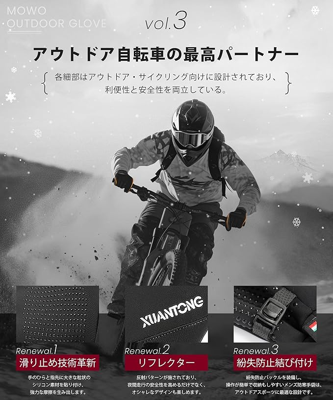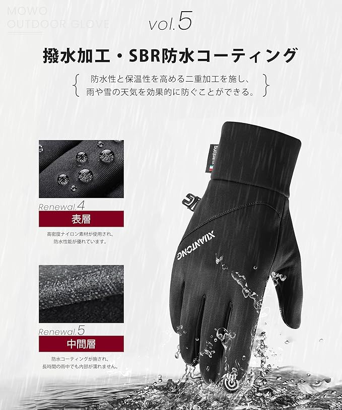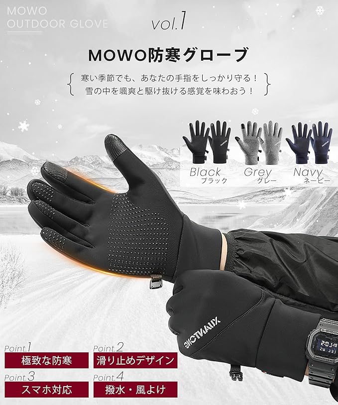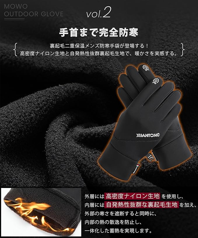 [MOWO] 手袋 メンズ 防寒グローブ 【裏起毛で急速昇温・滑り止め加工・超高感度スマホ対応】防寒手袋 バイクグローブ 冬 滑り止め 防風 厚手 人間工学 タッチパネル対応 撥水加工 紛失防止結び付け 暖かい スポーツ スキー 通勤 通学 作業