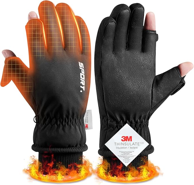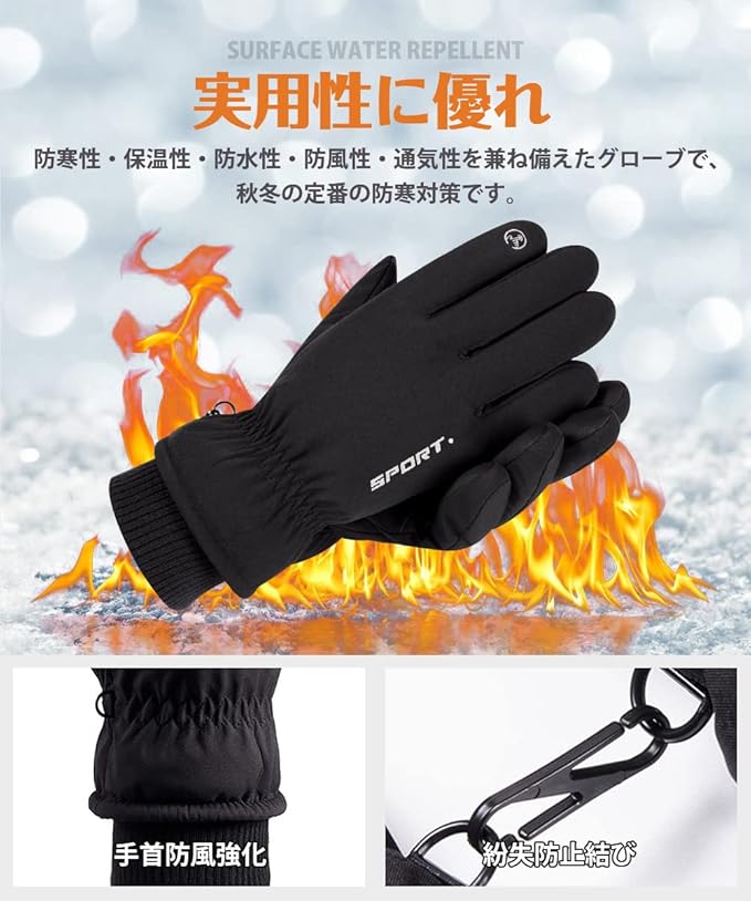 アウトドアグローブ バイク グローブ 冬 防寒 【2本指出し・あったか裏起毛】 人間工学設計 スマホ対応 防風 防水 撥水 滑り止め 通気性 弾性手首 手首にニットカラス 暖かい 指切り 手袋 メンズ バイク 防寒手袋 a
