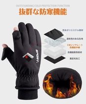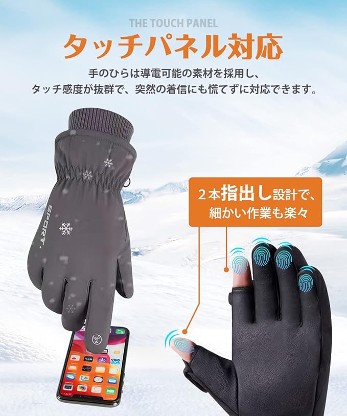 アウトドアグローブ バイク グローブ 冬 防寒 【2本指出し・あったか裏起毛】 人間工学設計 スマホ対応 防風 防水 撥水 滑り止め 通気性 弾性手首 手首にニットカラス 暖かい 指切り 手袋 メンズ バイク 防寒手袋