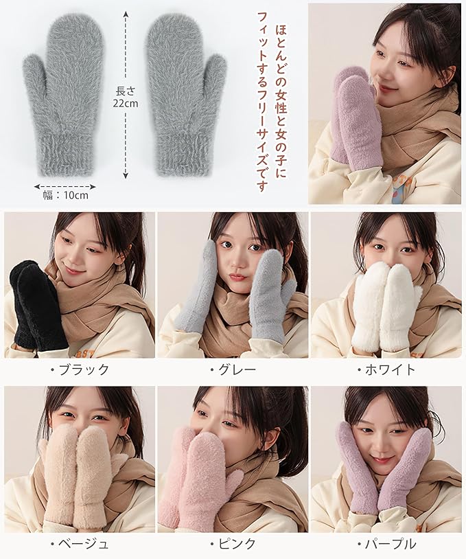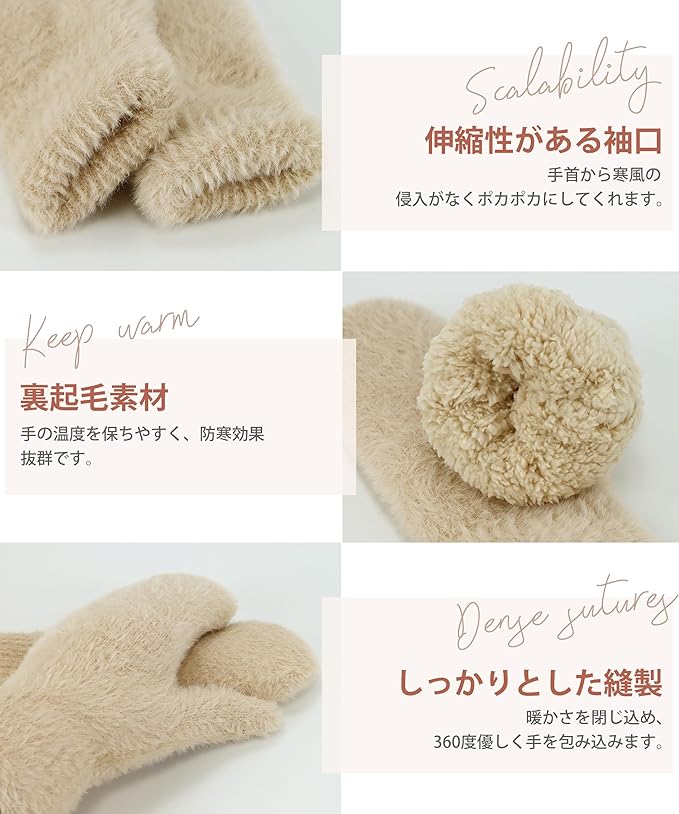 [MOWO] 手袋 レディース 防寒手袋 【ふわふわで可愛いい・暖かい裏起毛・毛が抜けにくい】 冬 柔らかい 温かい グローブ 保温 伸縮性 窮屈感ゼロ 自転車 通勤 プレゼント グラブ てぶくろ ミトン a