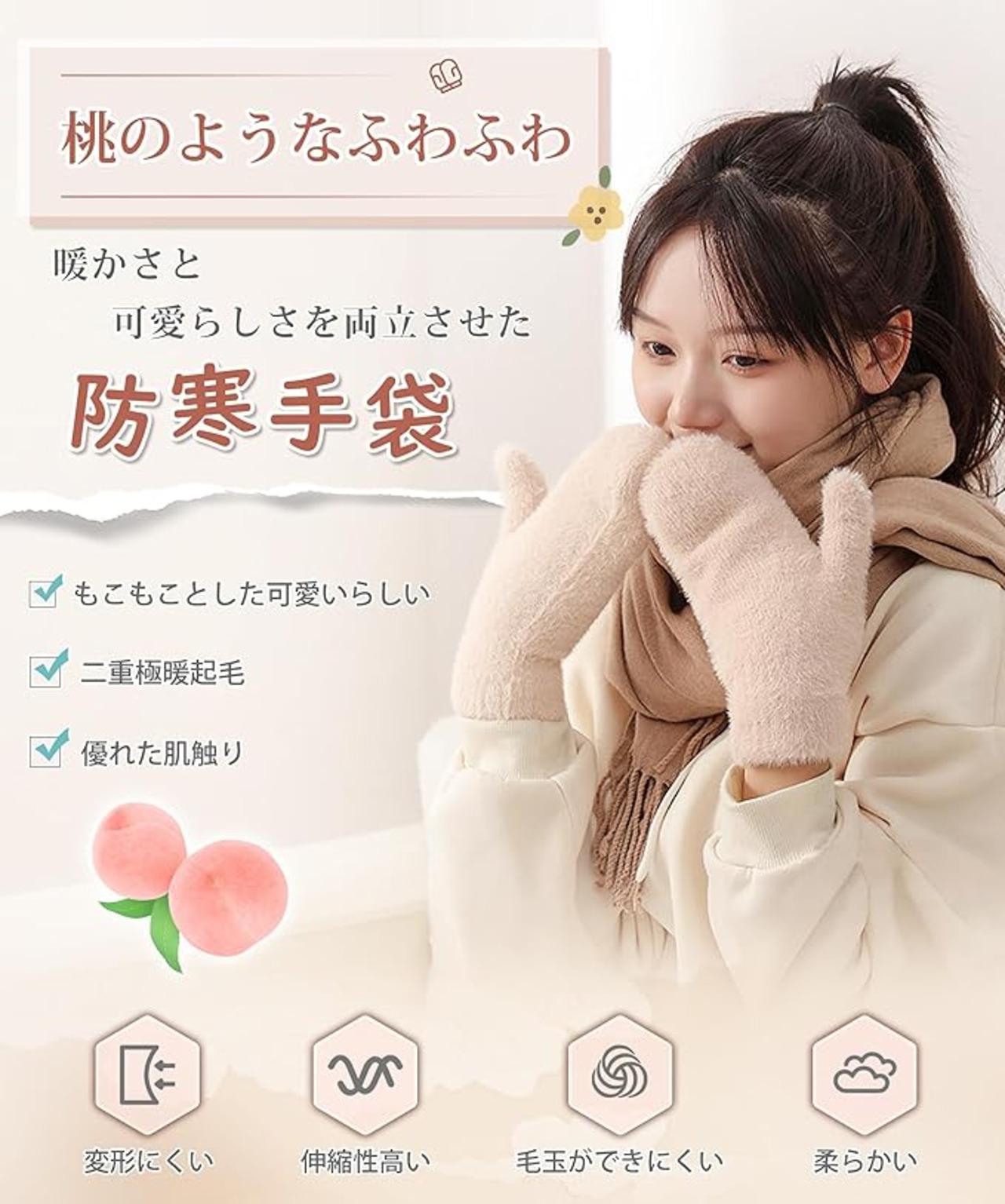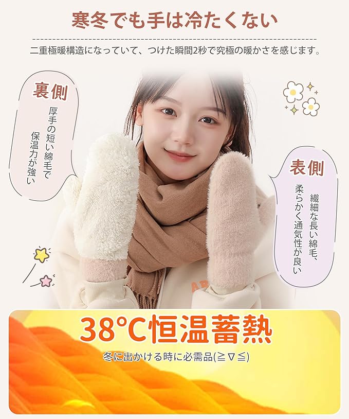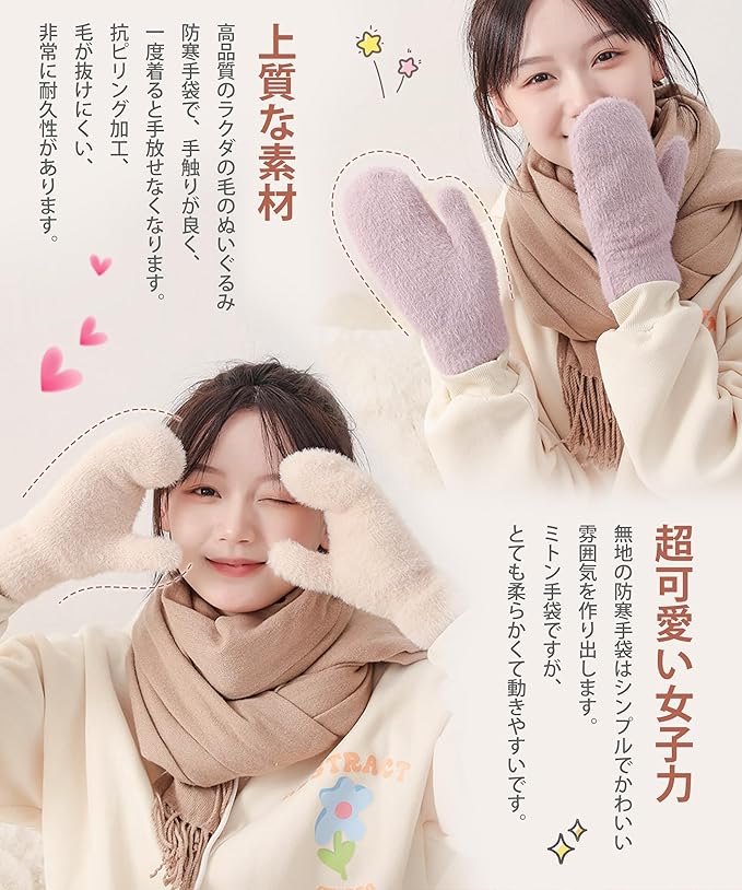 [MOWO] 手袋 レディース 防寒手袋 【ふわふわで可愛いい・暖かい裏起毛・毛が抜けにくい】 冬 柔らかい 温かい グローブ 保温 伸縮性 窮屈感ゼロ 自転車 通勤 プレゼント グラブ てぶくろ ミトン