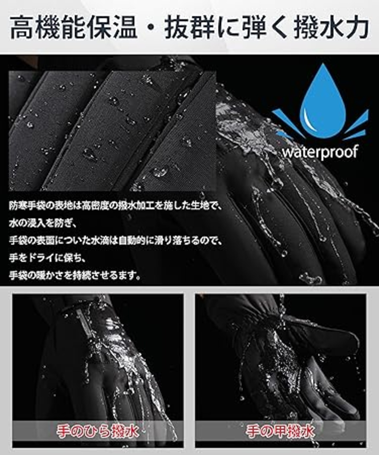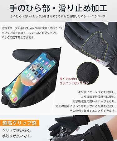 バイク グローブ 秋【3Mシンサレート・裏起毛で高い保温性能・弾く撥水力】手袋 防寒 防水 スマホ対応 保温 厚手 滑り止め 暖かい 自転車 紛失防止結び 男女兼用 a