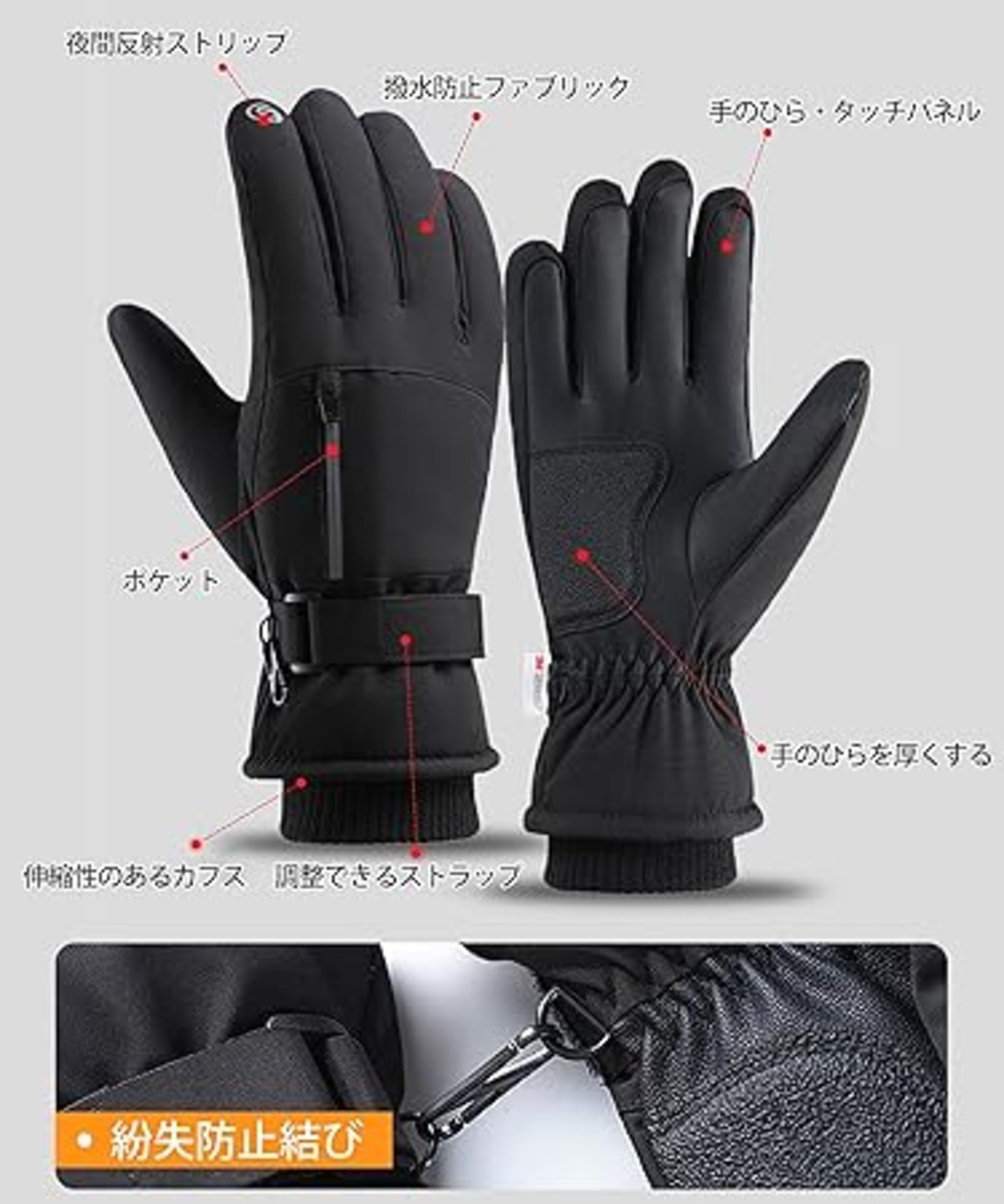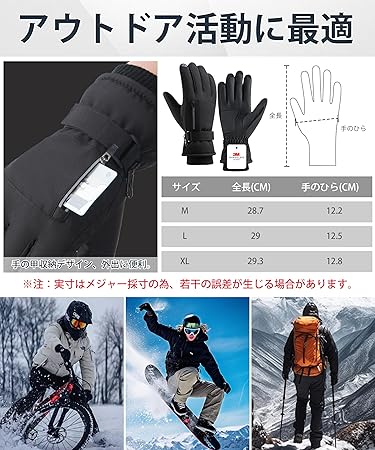 【3Mシンサレート・高機能断熱防風】アウトドアグローブは、よりスリムで、より軽く、より暖かい3Mシンサレート高機能中綿素材が、動きやすく快適な暖かさを提供するできます。従来のポリエステル綿と比較し、同じ厚みで約2倍の断熱効果を発揮なります。同じ断熱効果で比較すると、ポリエステル綿より25%軽くなります。また、手首部分が長めにデザインされており、隙間から冷たい空気が入り込む可能性を最小限に抑えるため、伸縮性と密封性を備えたニット素材を採用した。真冬でも手を暖かく保ちます。