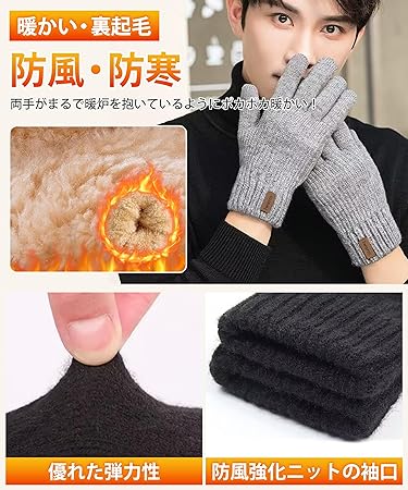 手袋 メンズ 冬 ニットグローブ 防寒 【スマホ対応・裏起毛・ 瞬間5℃上昇・ふんわり柔らかくて暖かい】 冬 防寒 厚手 ニット手袋 暖かい 保温 ファション 柔らか 伸縮性 バイク サイクリング 通学 通勤 2スタイル 男女兼用 a